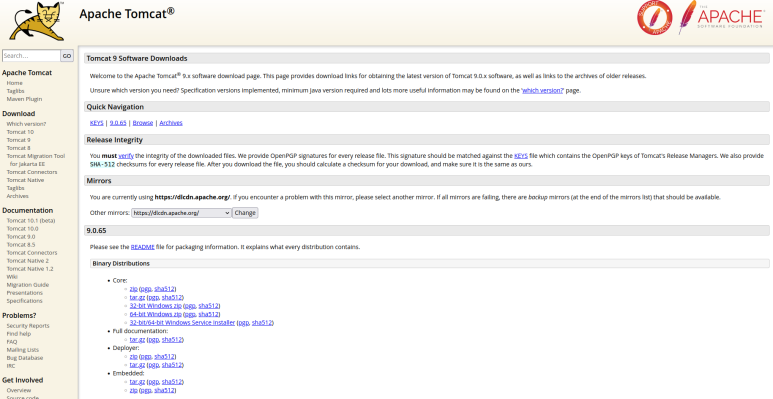 이번엔 https://tomcat.apache.org/ 이 링크에 들어가신 후 좌측 다운로드란의 원하는 톰캣버전을 선택해주세요.